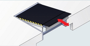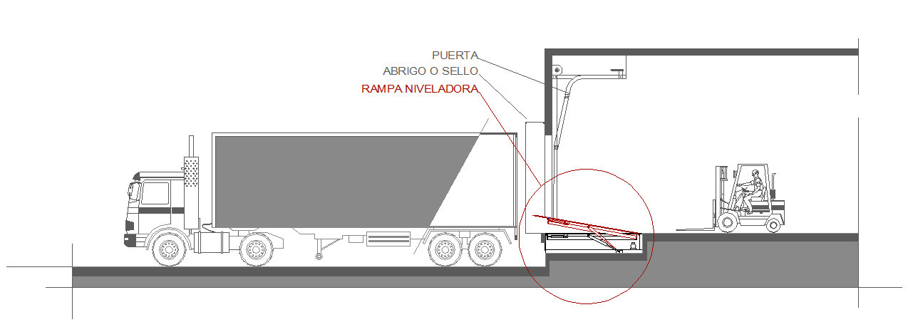 La RAMPA o PLATAFORMA NIVELADORA establece un "puente" entre el piso de la nave y el piso del camión para agilizar y realizar de forma segura la maniobra de carga y descarga.