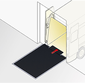 La estructura que forma la rampa permite o absorbe inclinaciones de hasta 100mm, acompañando los desniveles del piso del camión durante la maniobra de carga / descarga.